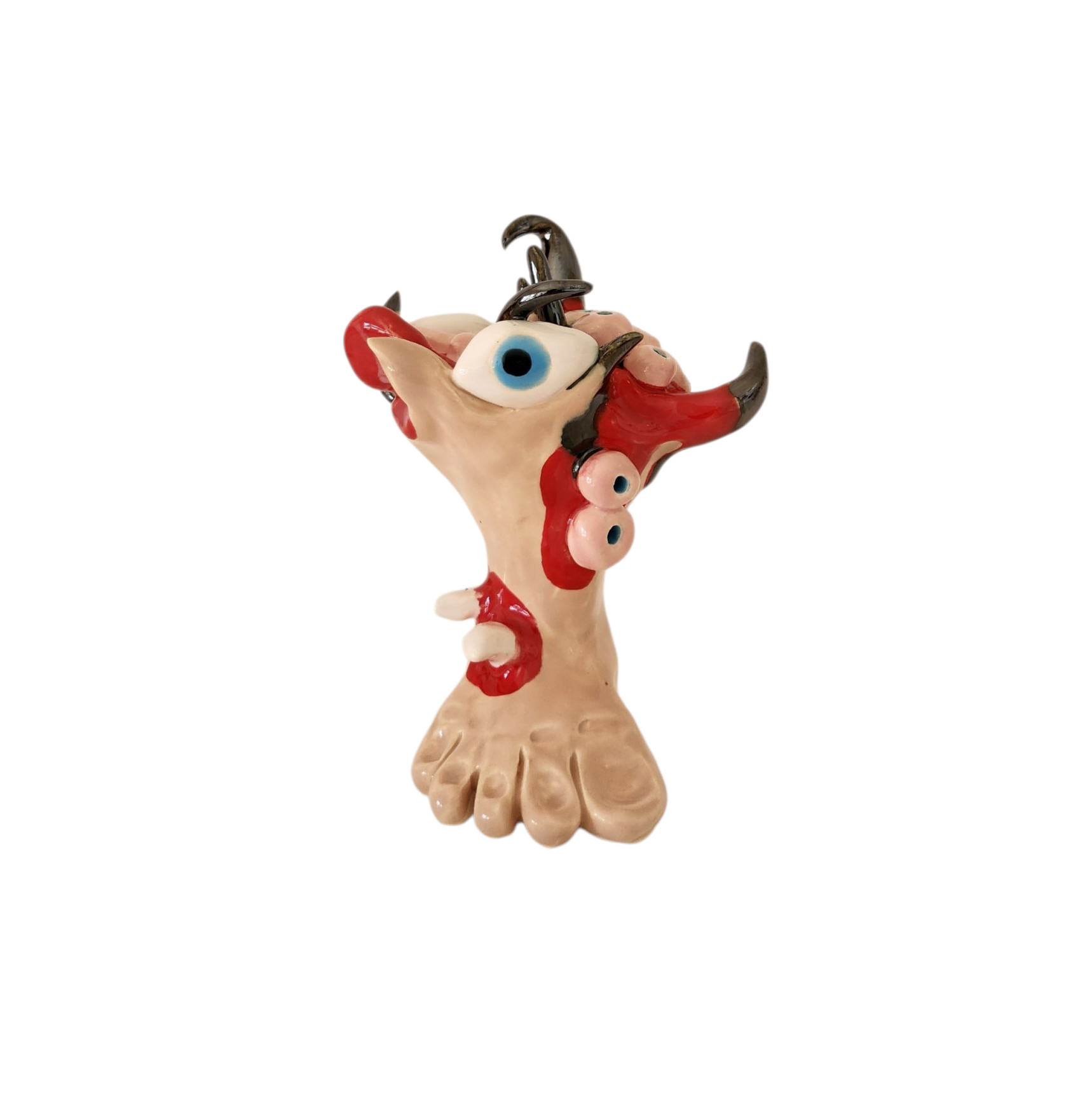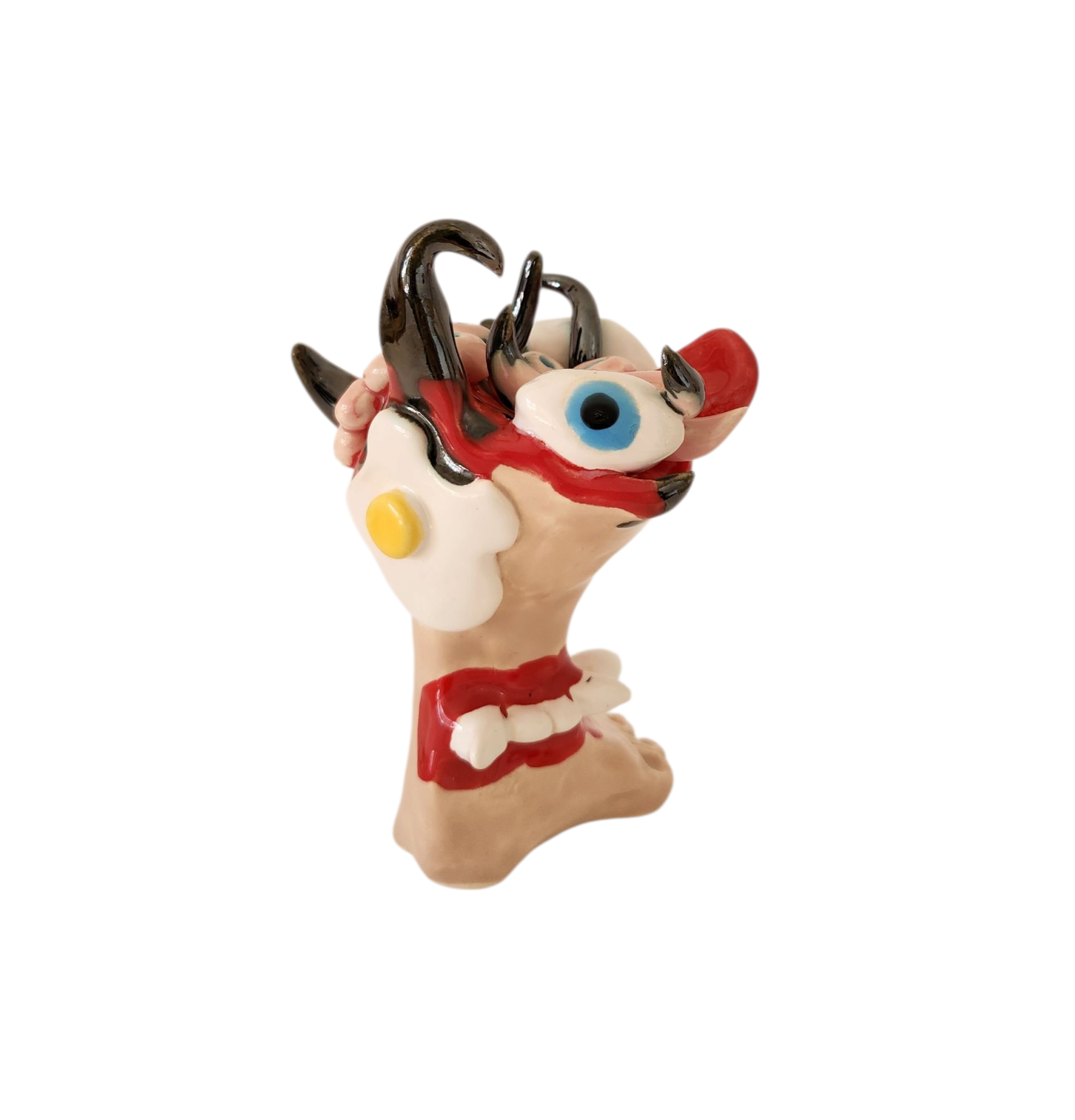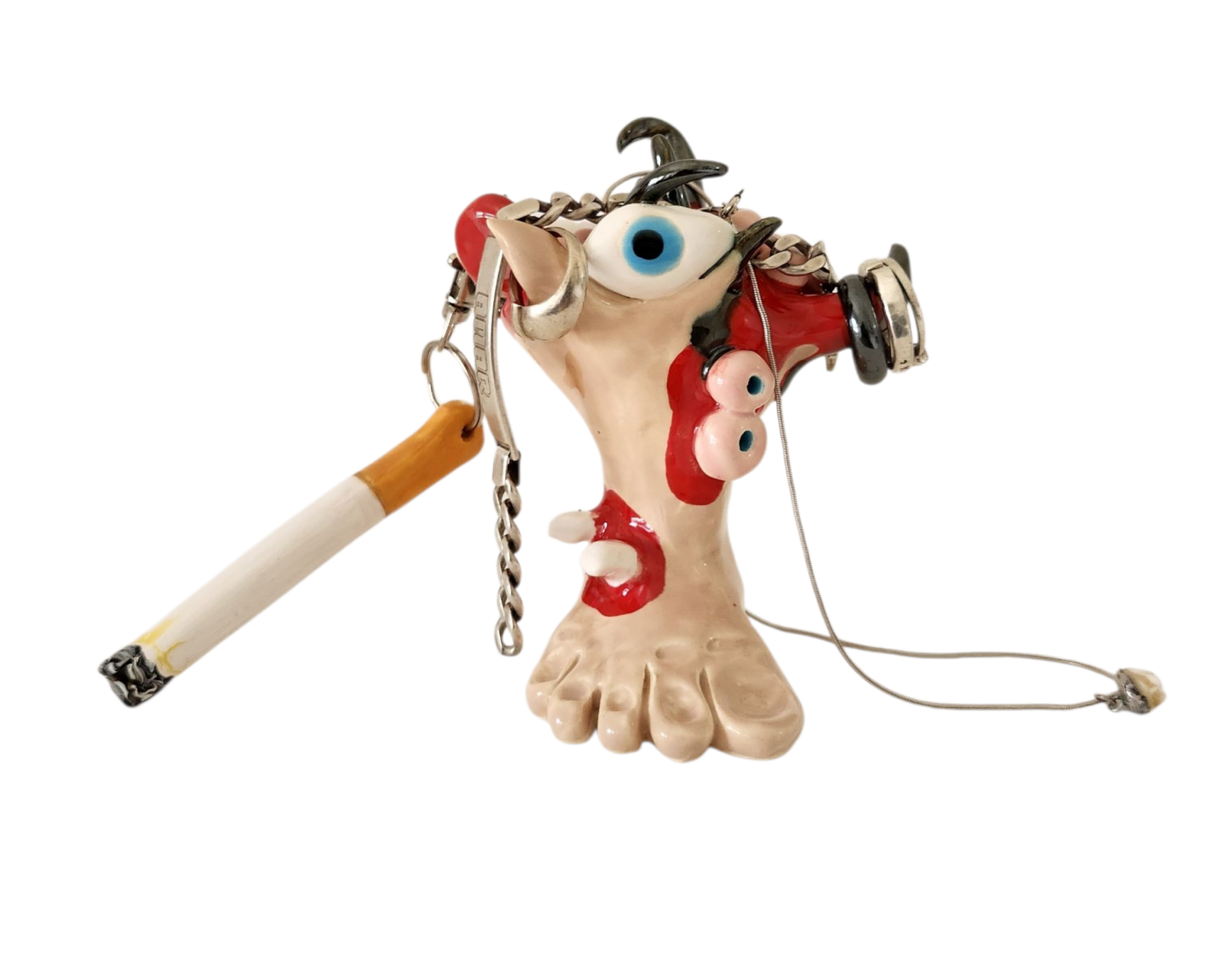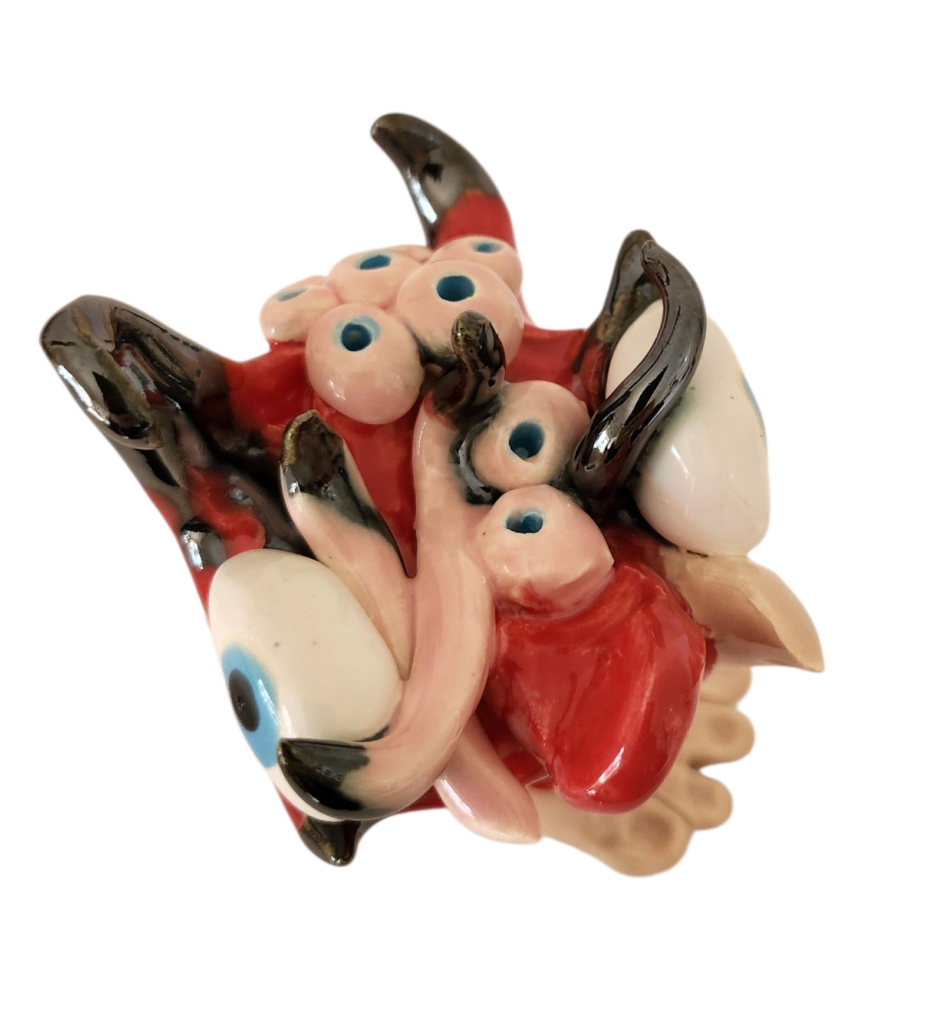 A multi layered ceramic sculpture which may function as a holder for chains and rings.