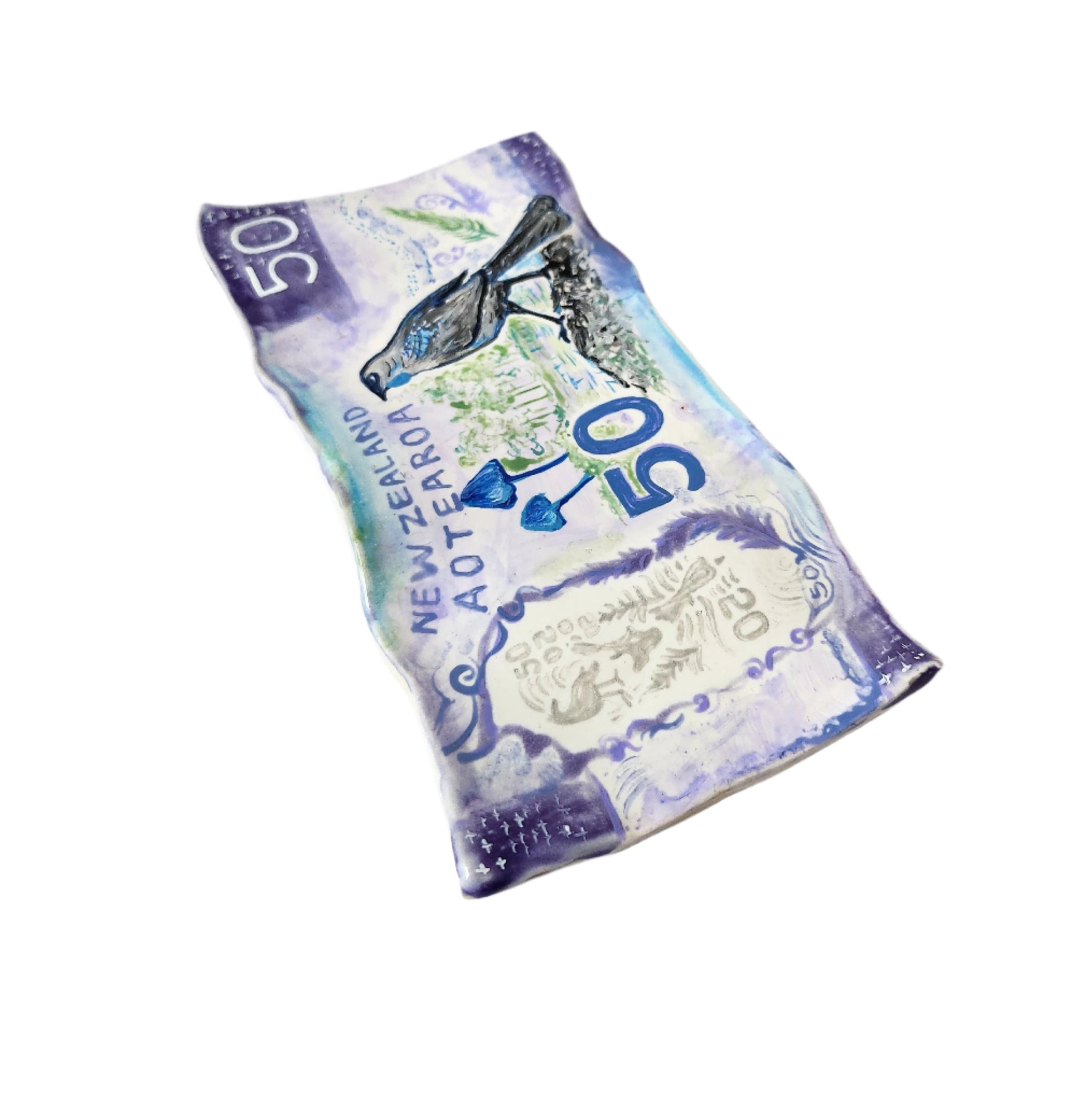 Ceramic artist's interpretation of the $50 note from Aotearoa.