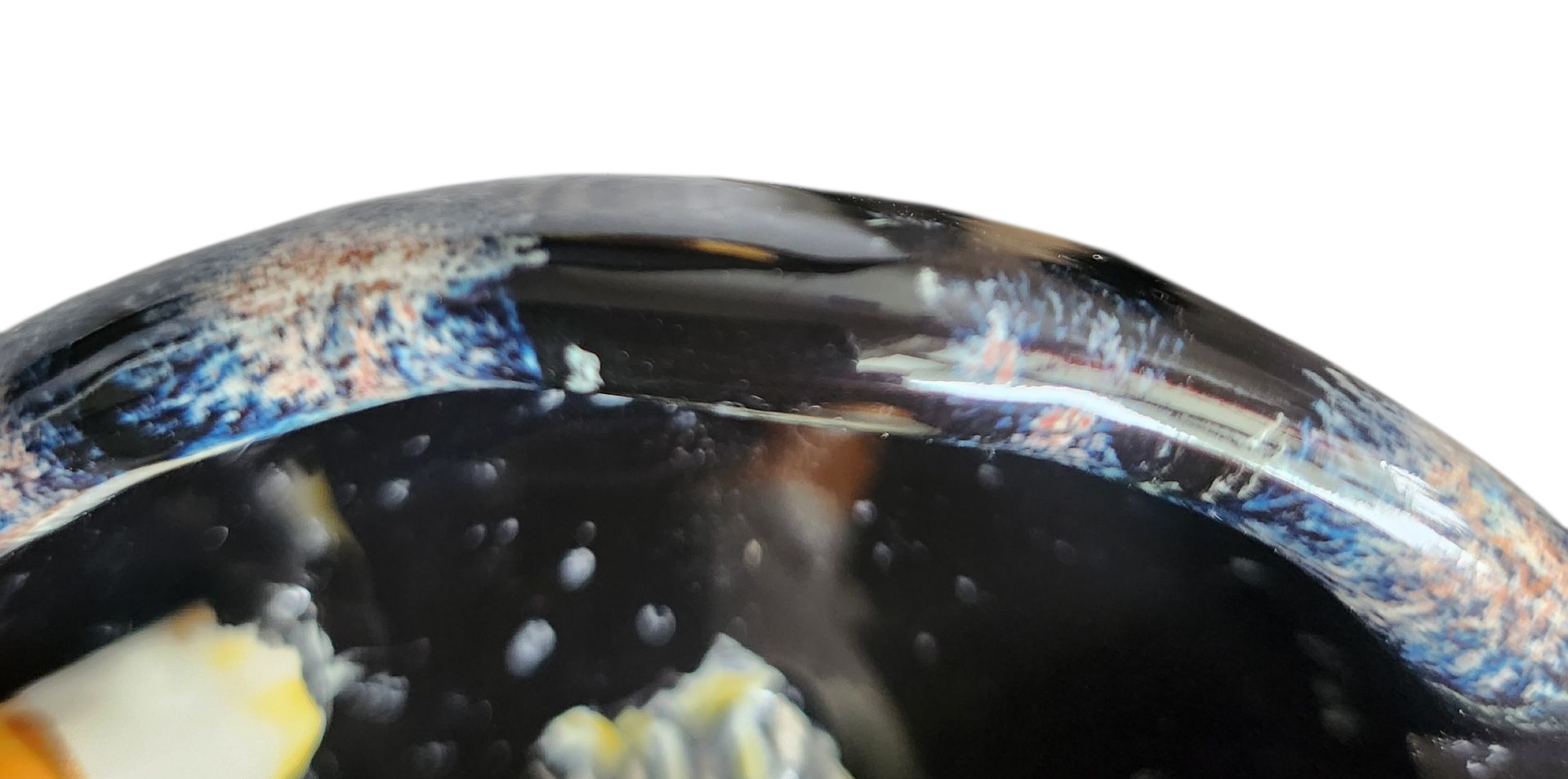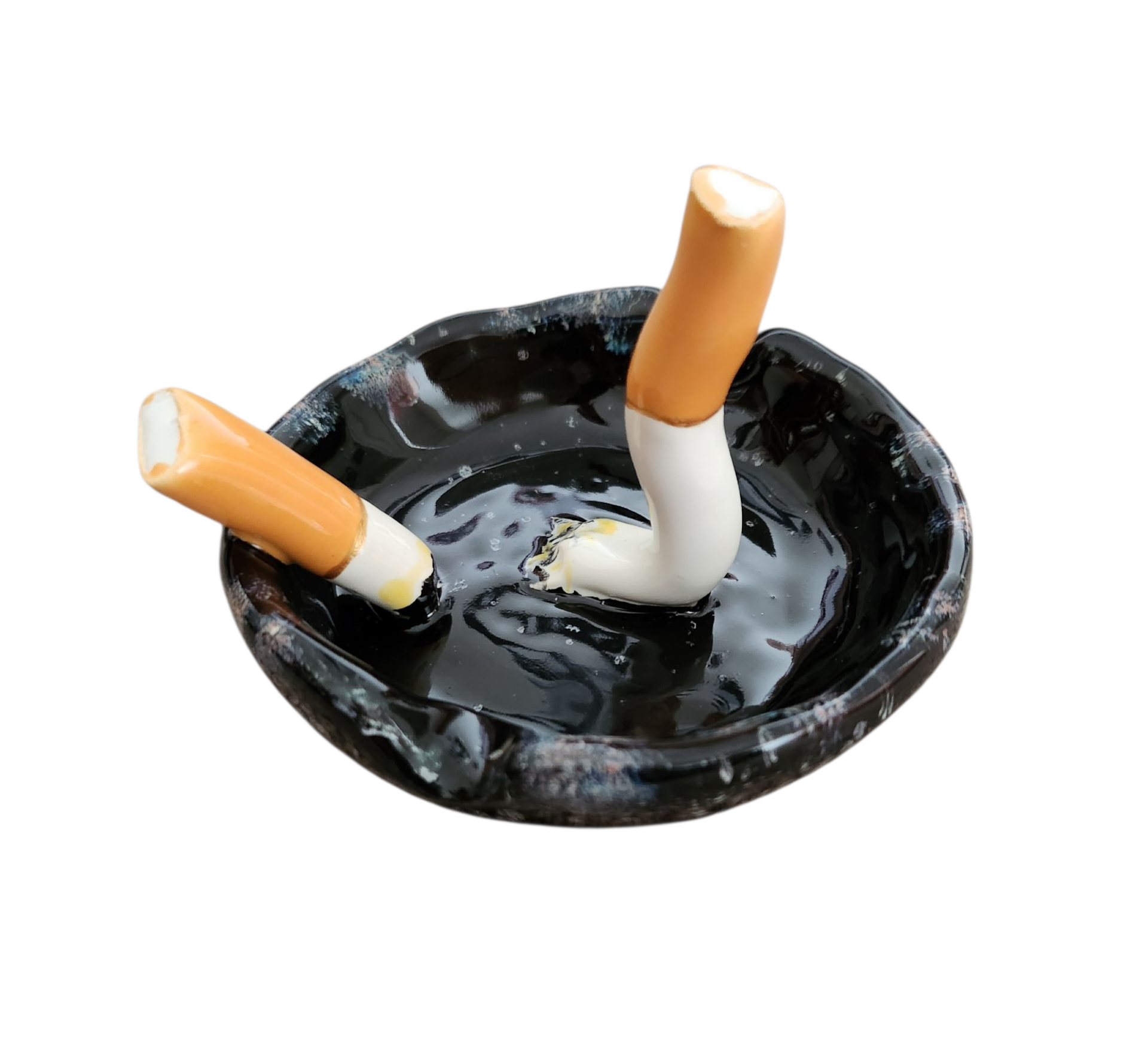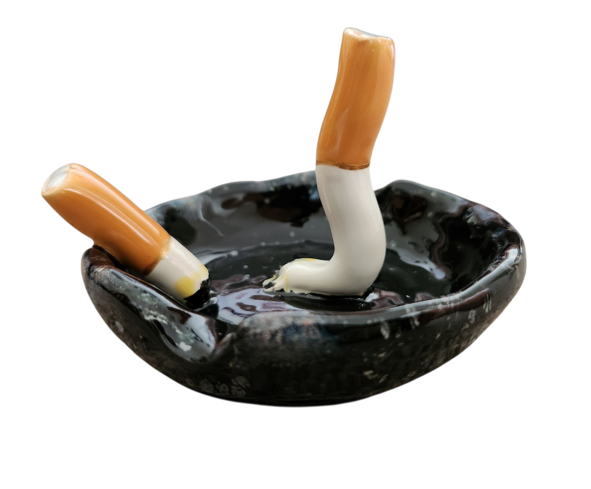 Ceramic ashtray with 2 attached cigarettes in a deep space galactic glaze.