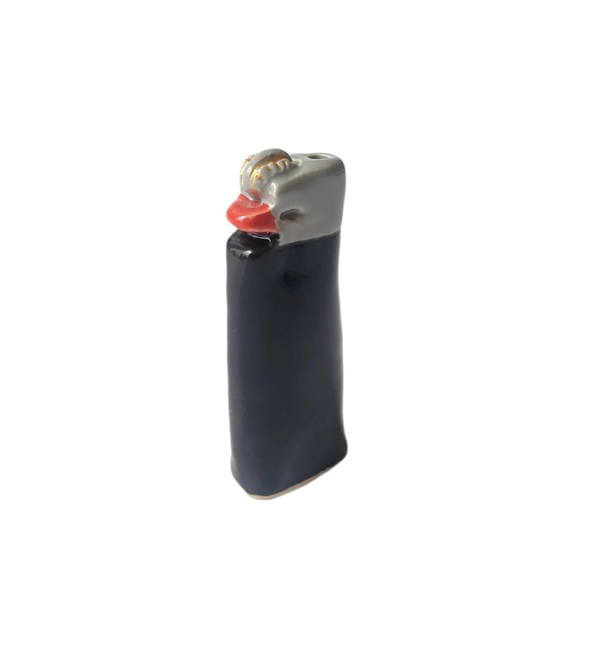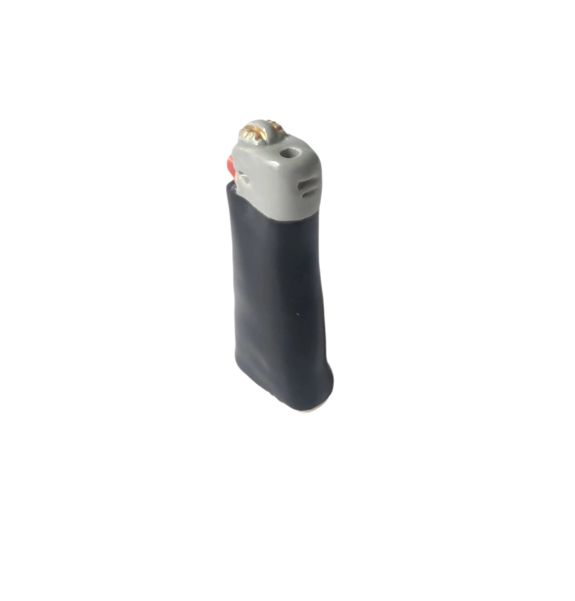 Ceramic plain black lighter presented here as a non functional sculpture.