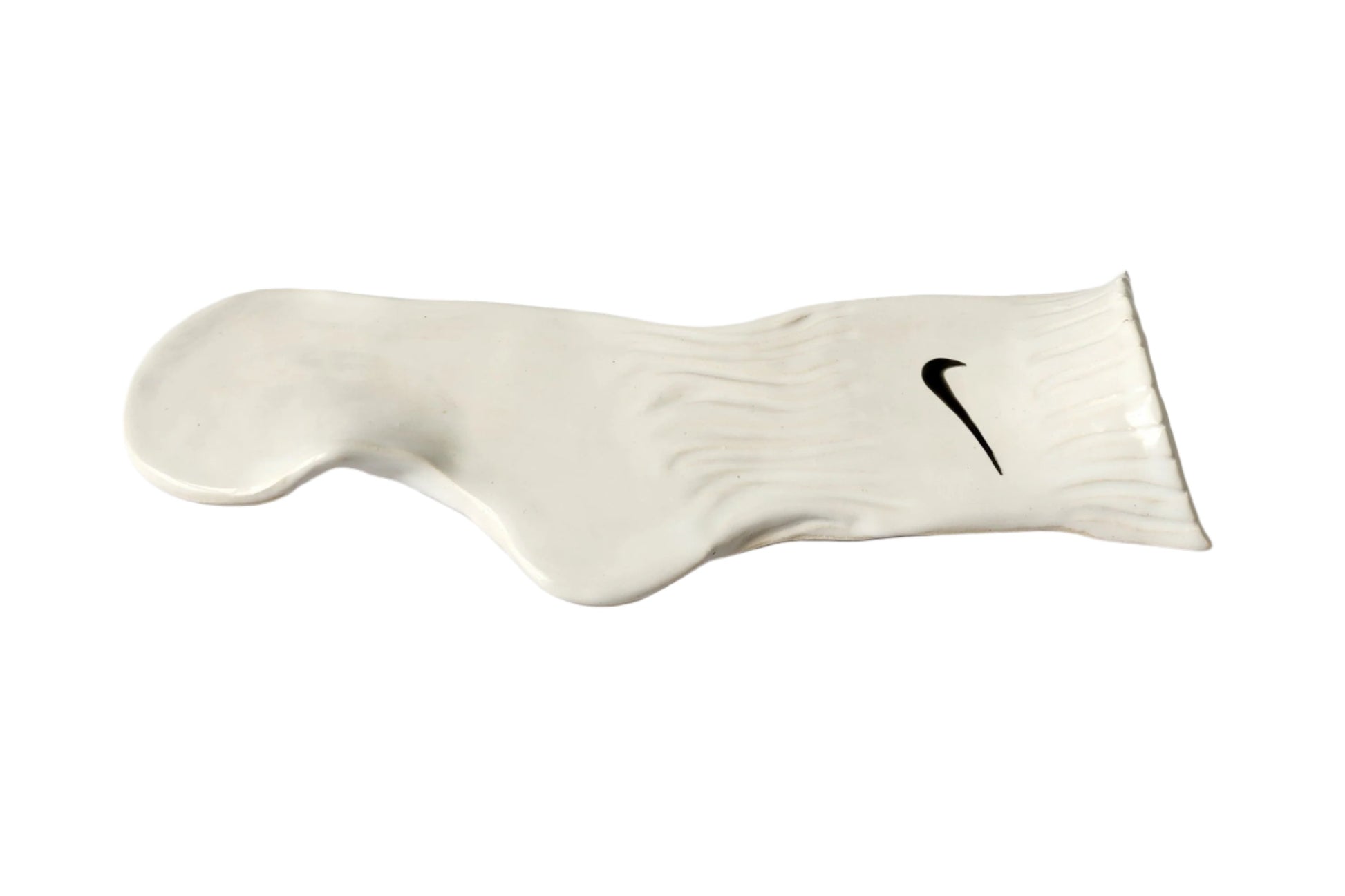 Ceramic sculpture of a discarded Nike sock in all it's beauty.