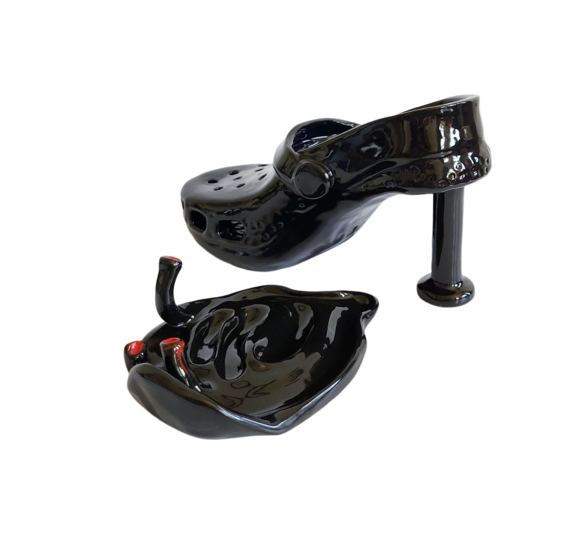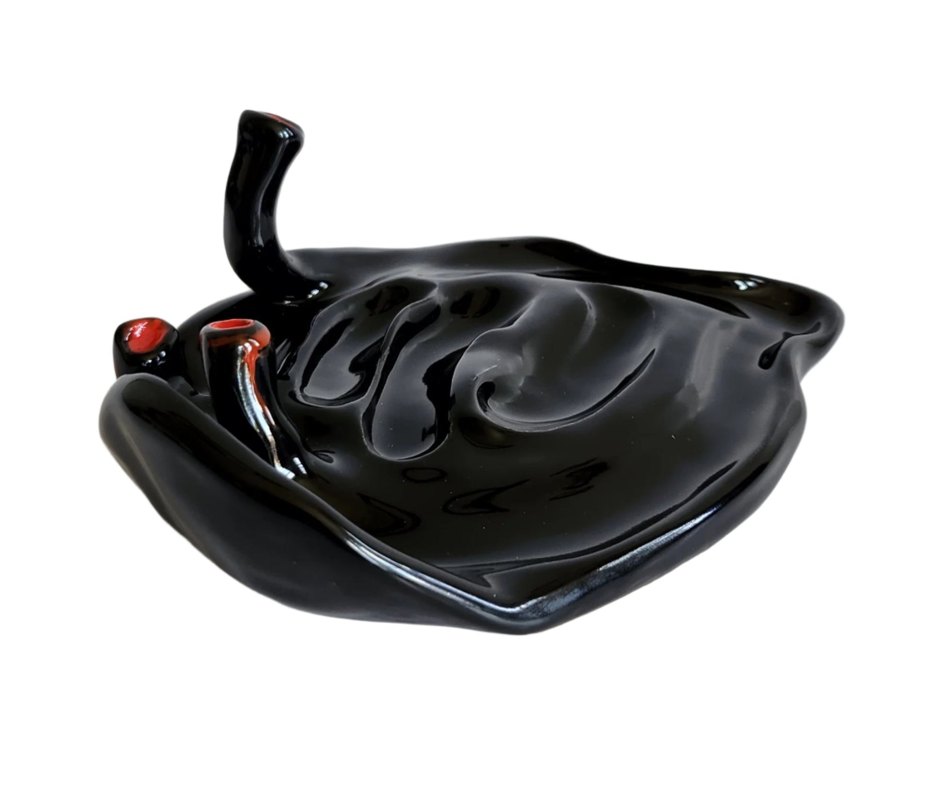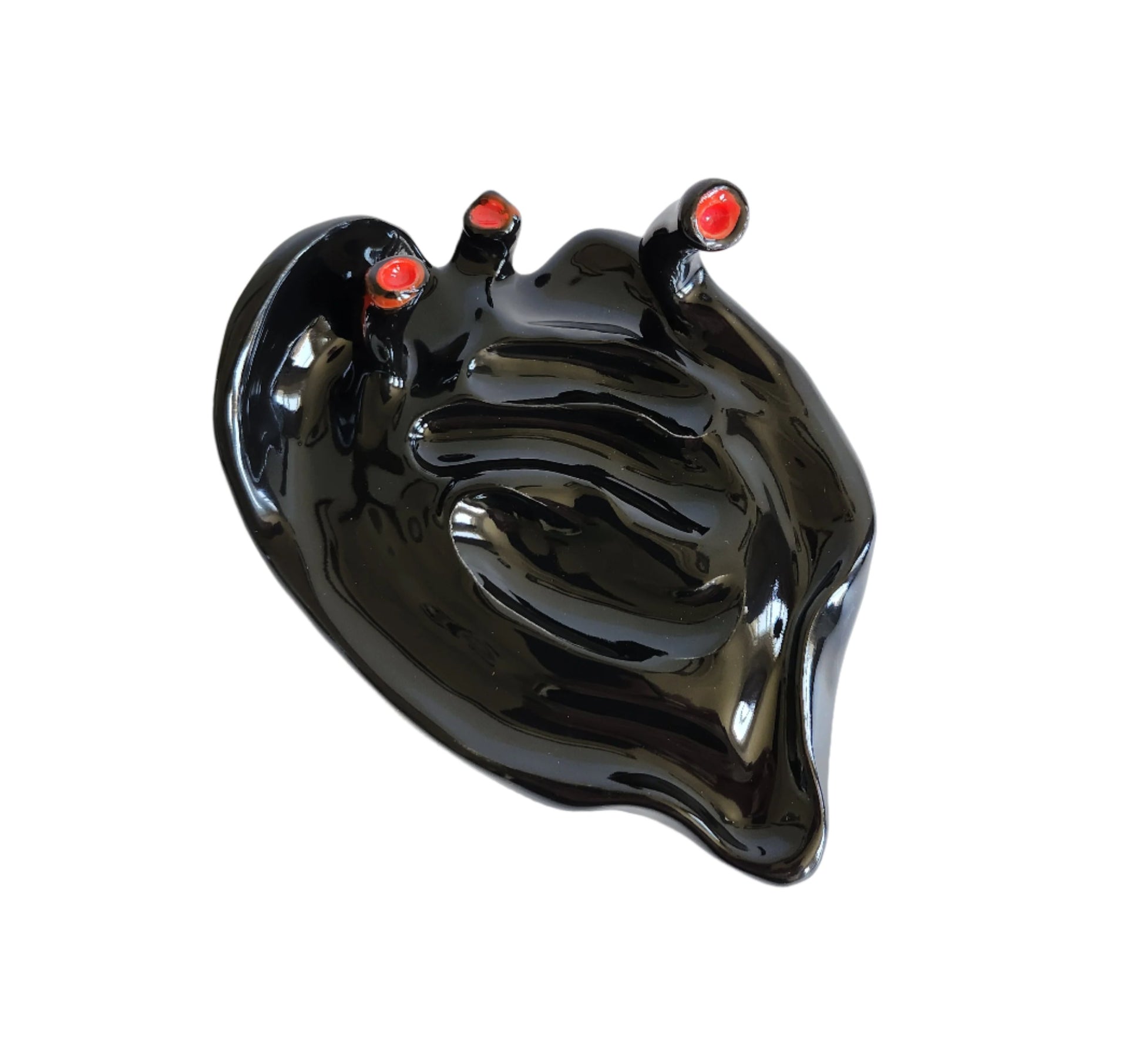 Obsidian Jet Black Heart Plate with 3 Tubular Protrusions.