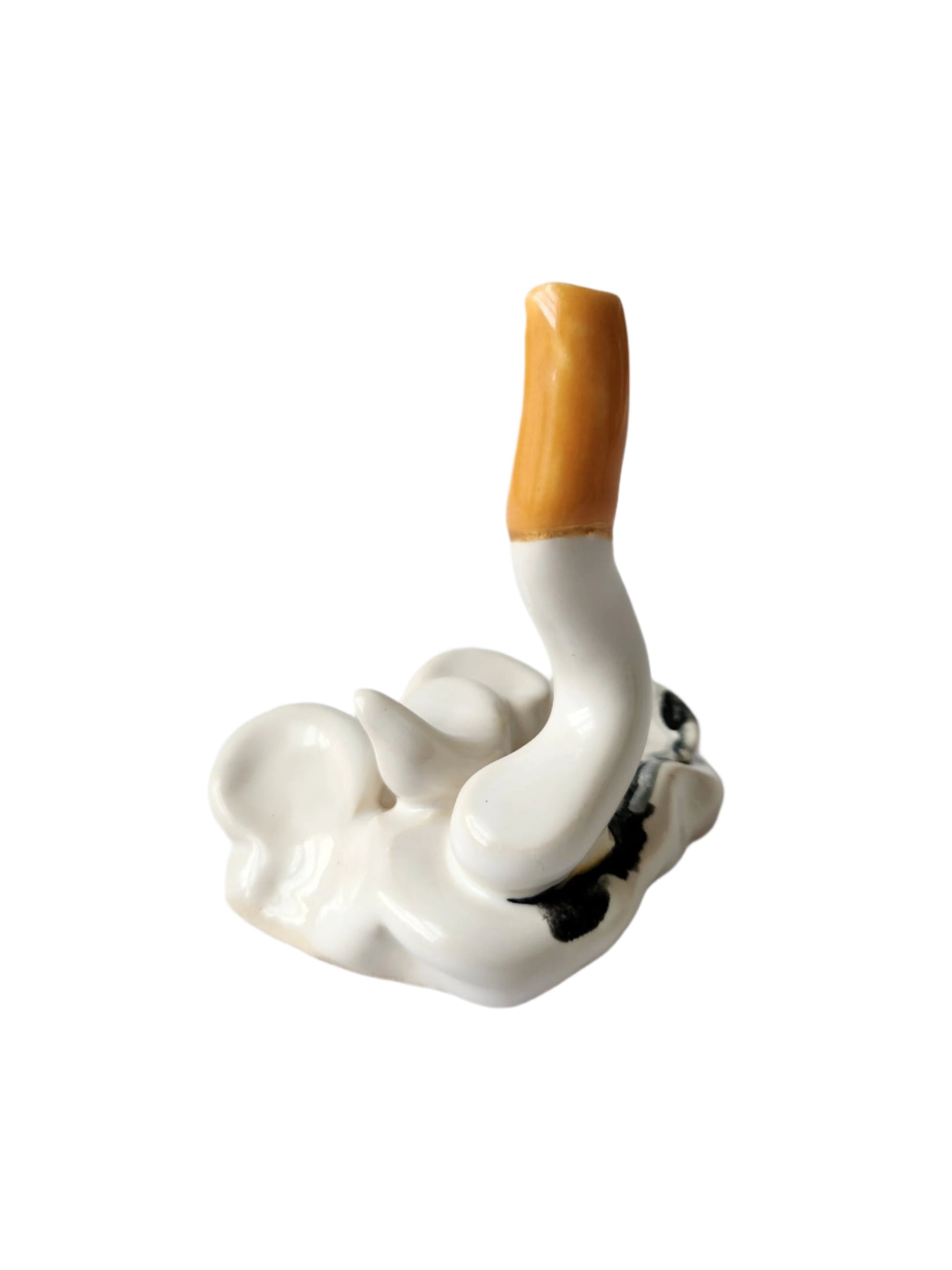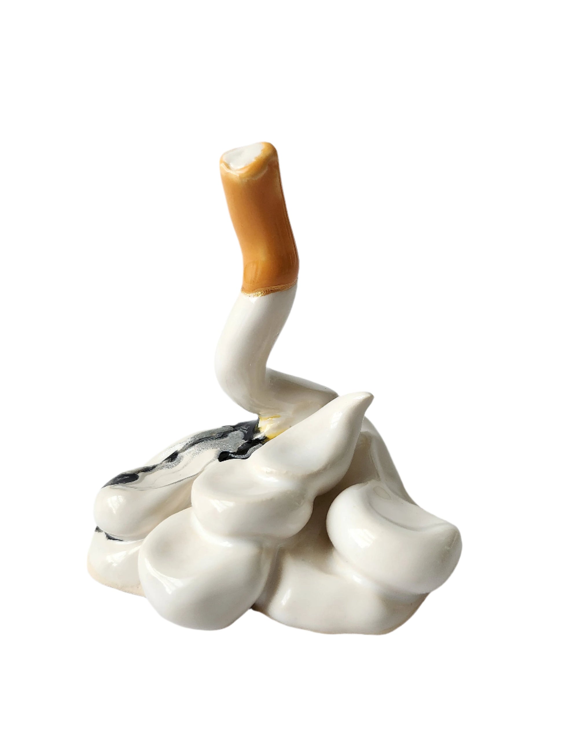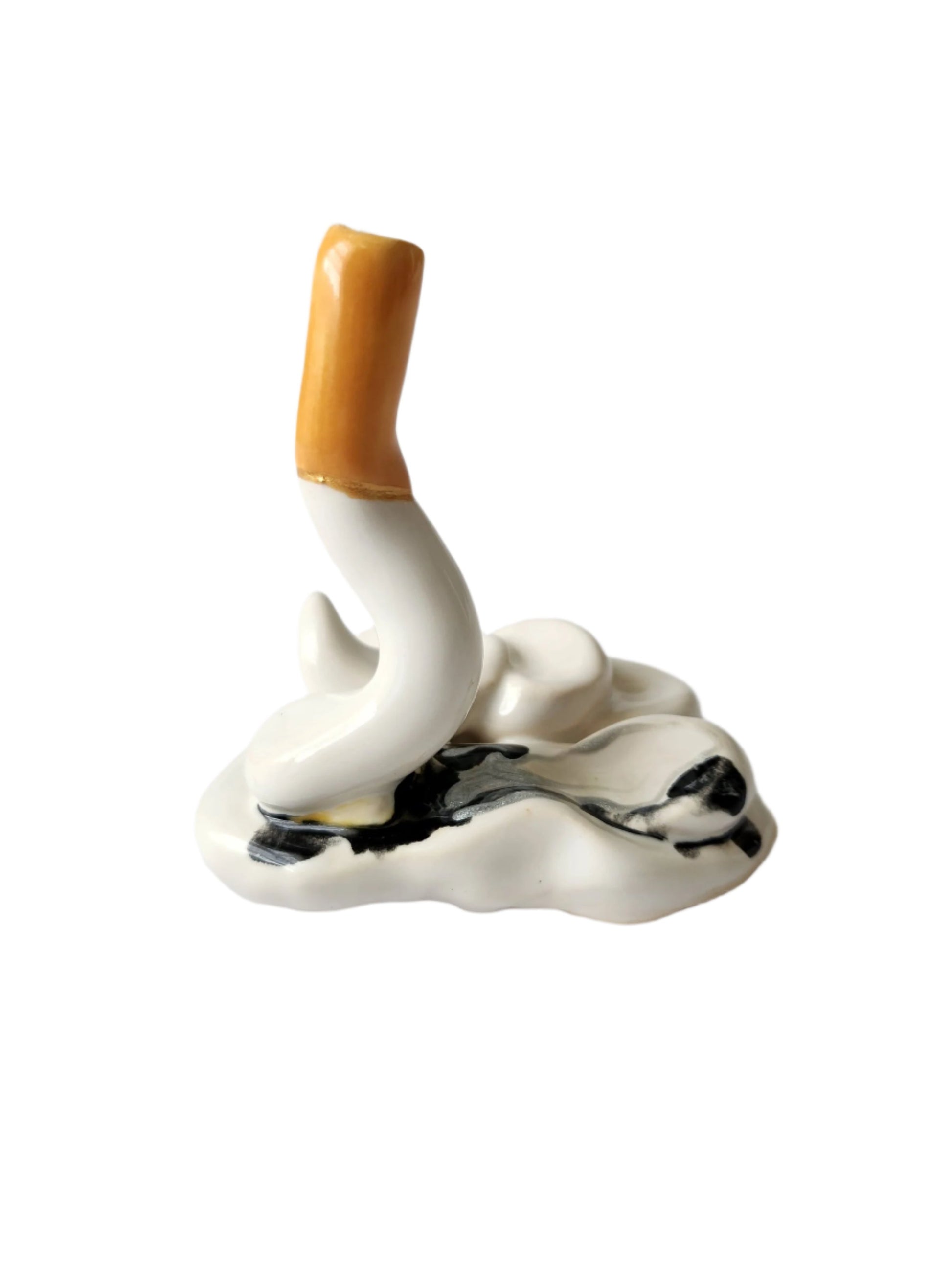Single ceramic cigarette floating on a cascade of ceramic formation.
