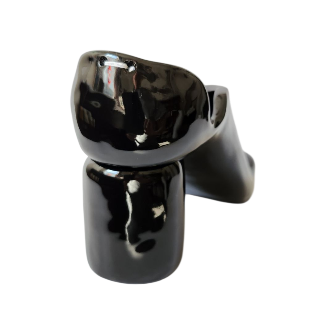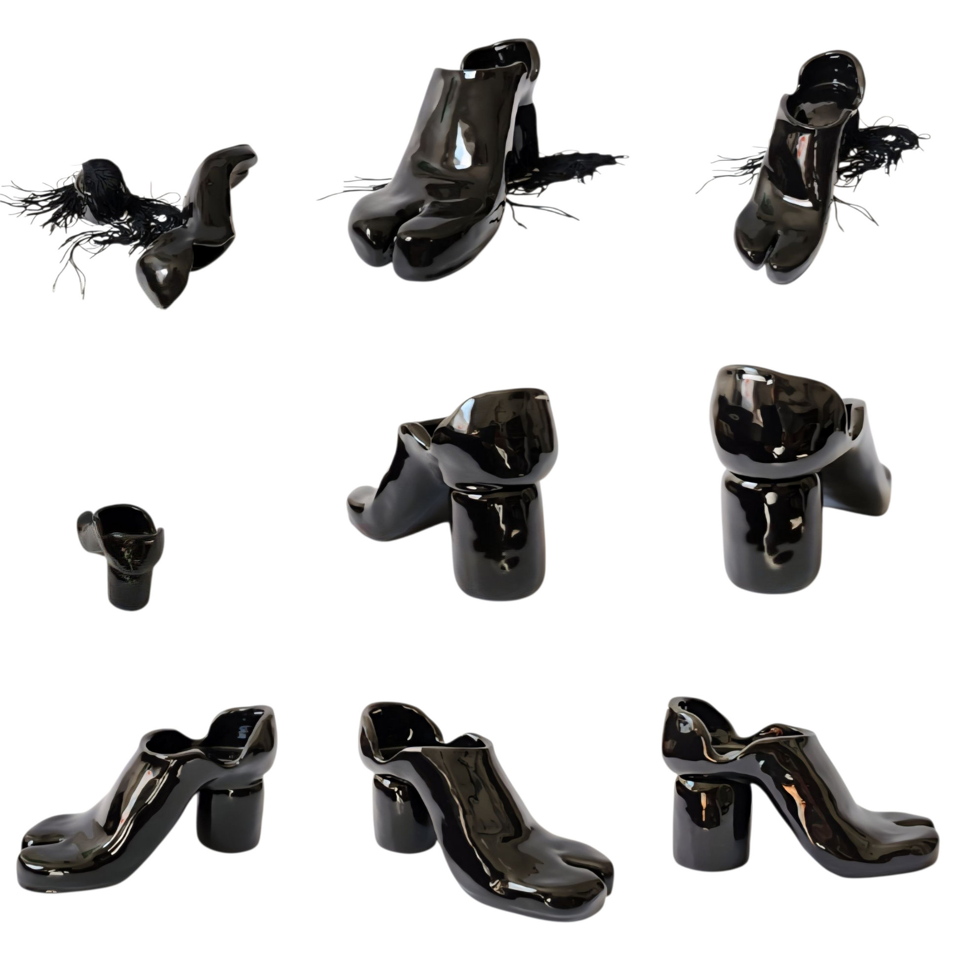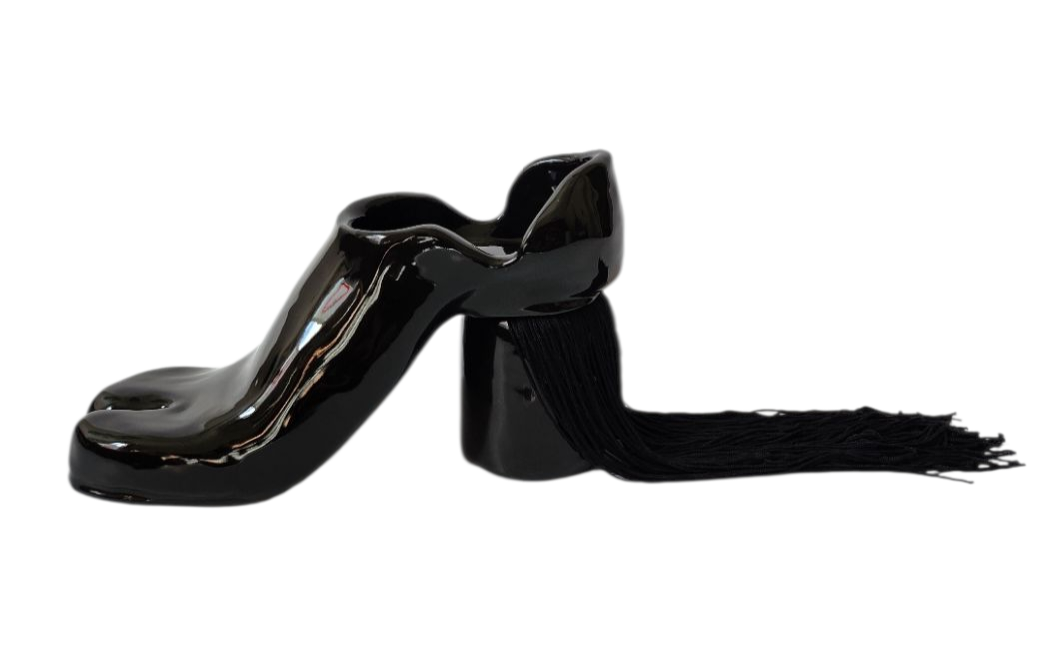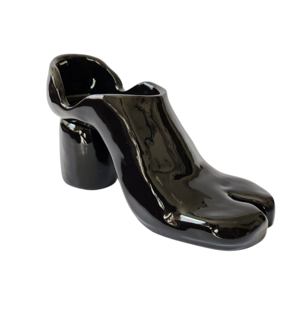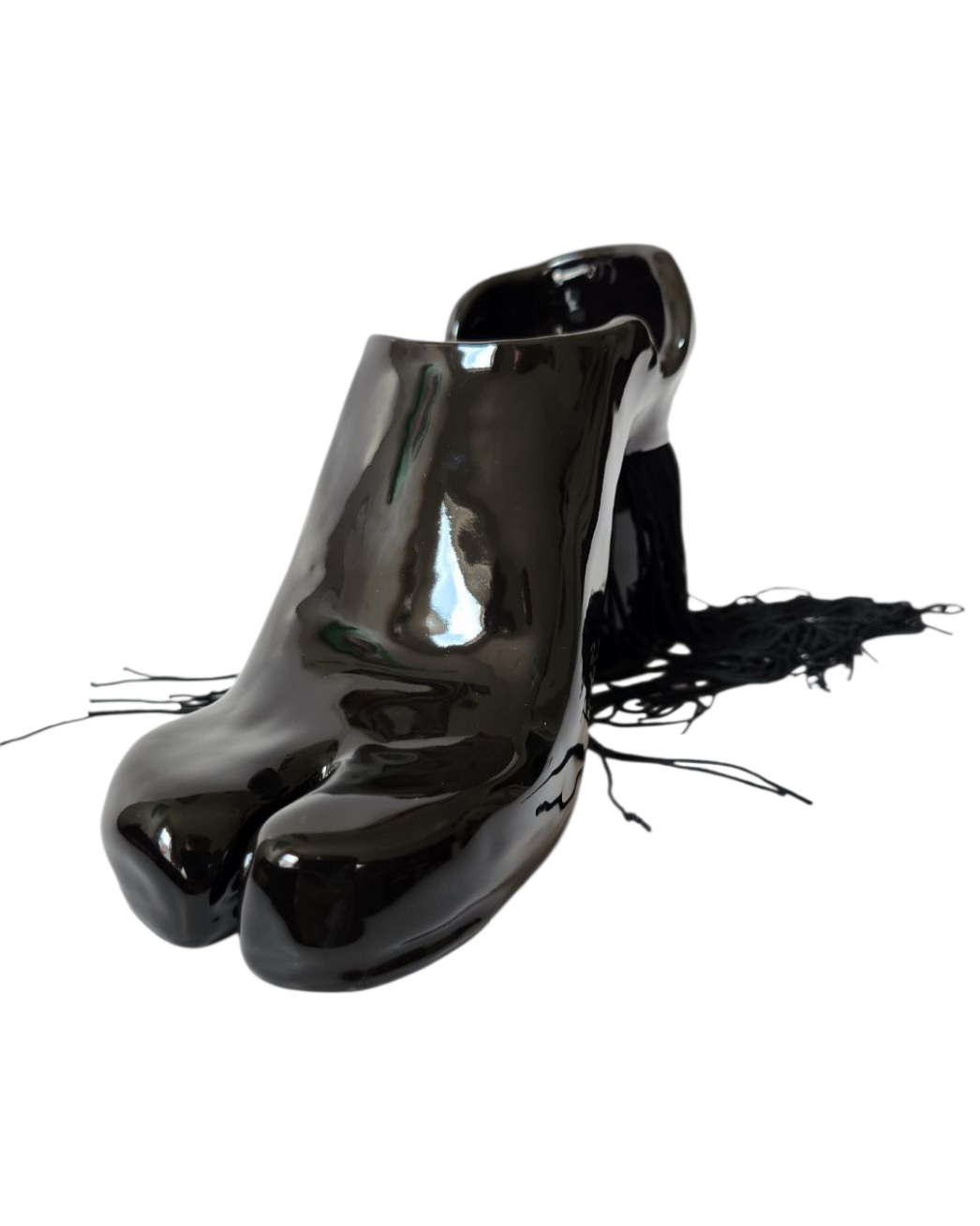 Produced in 2 moveable parts, this shoe has been created in the deepest black gloss.
