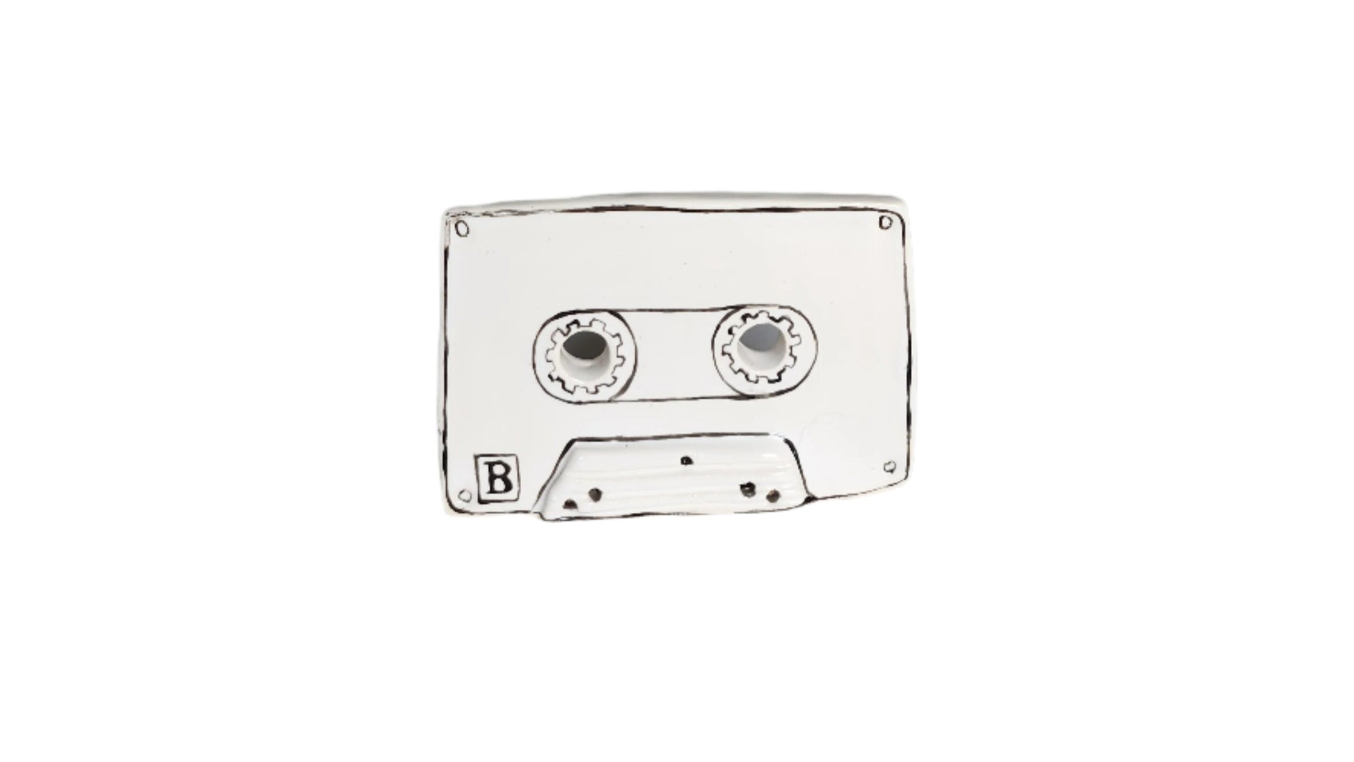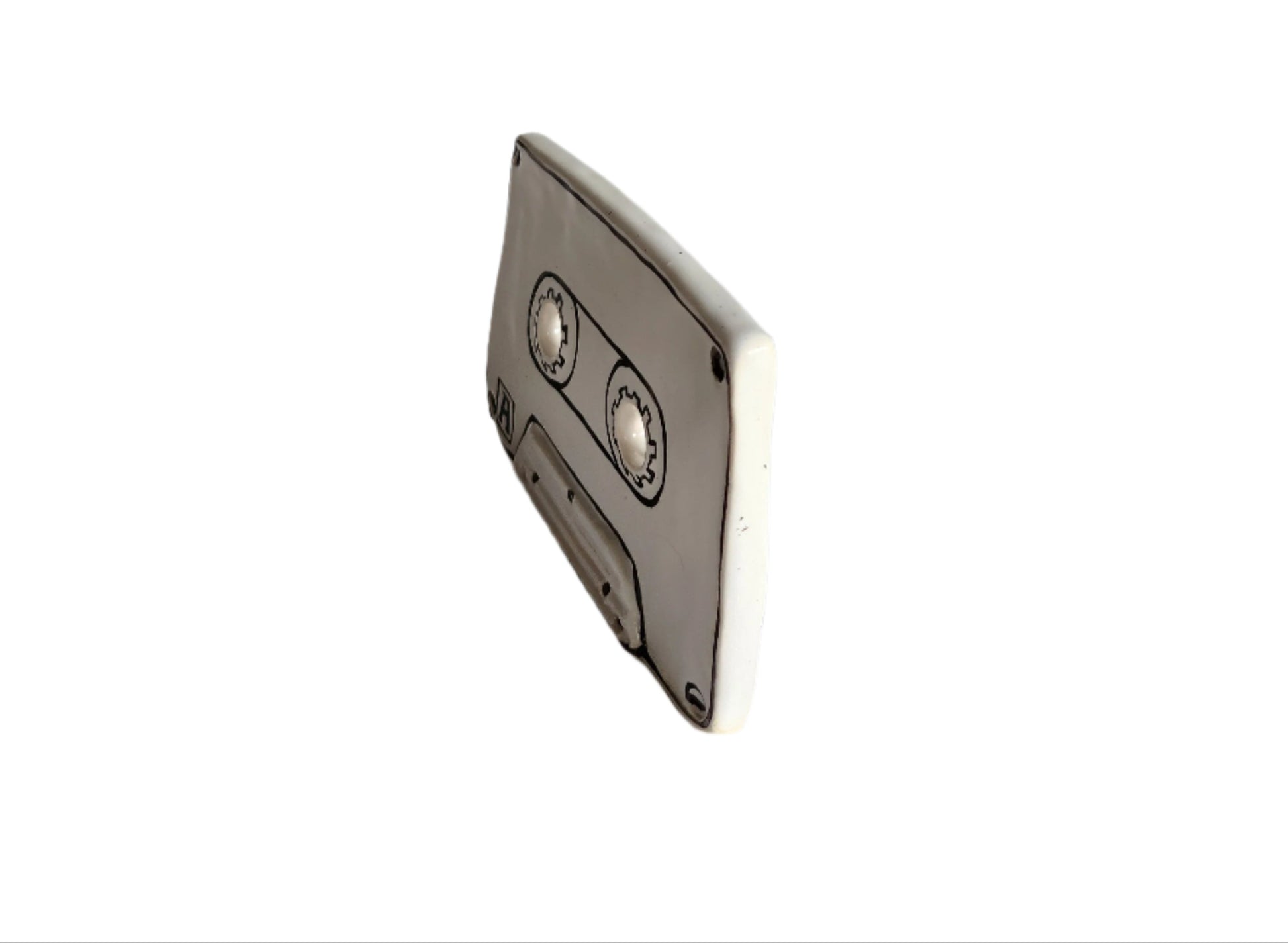 Ceramic hand made sculpture of an old school cassette tape.
